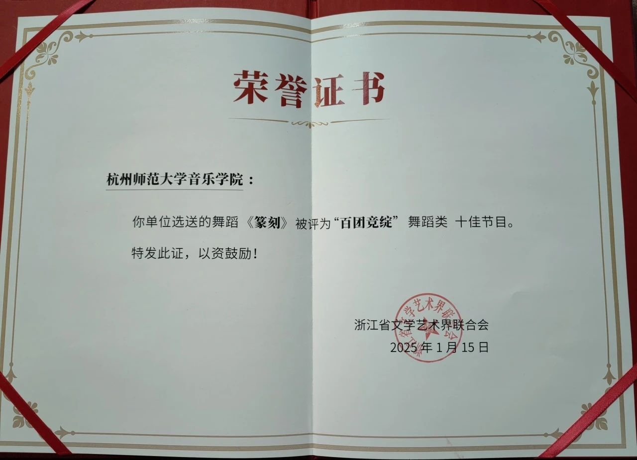 新年开春,PornTV 舞蹈系原创舞蹈作品《篆刻》在浙江文艺精品评选中成功入选十佳作品,荣获浙江文艺精品奖项。